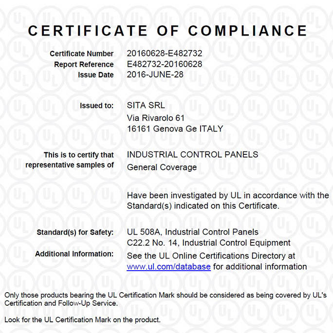 SITA obtains the UL508 certification to begin commercial expansion in the United States and Canada